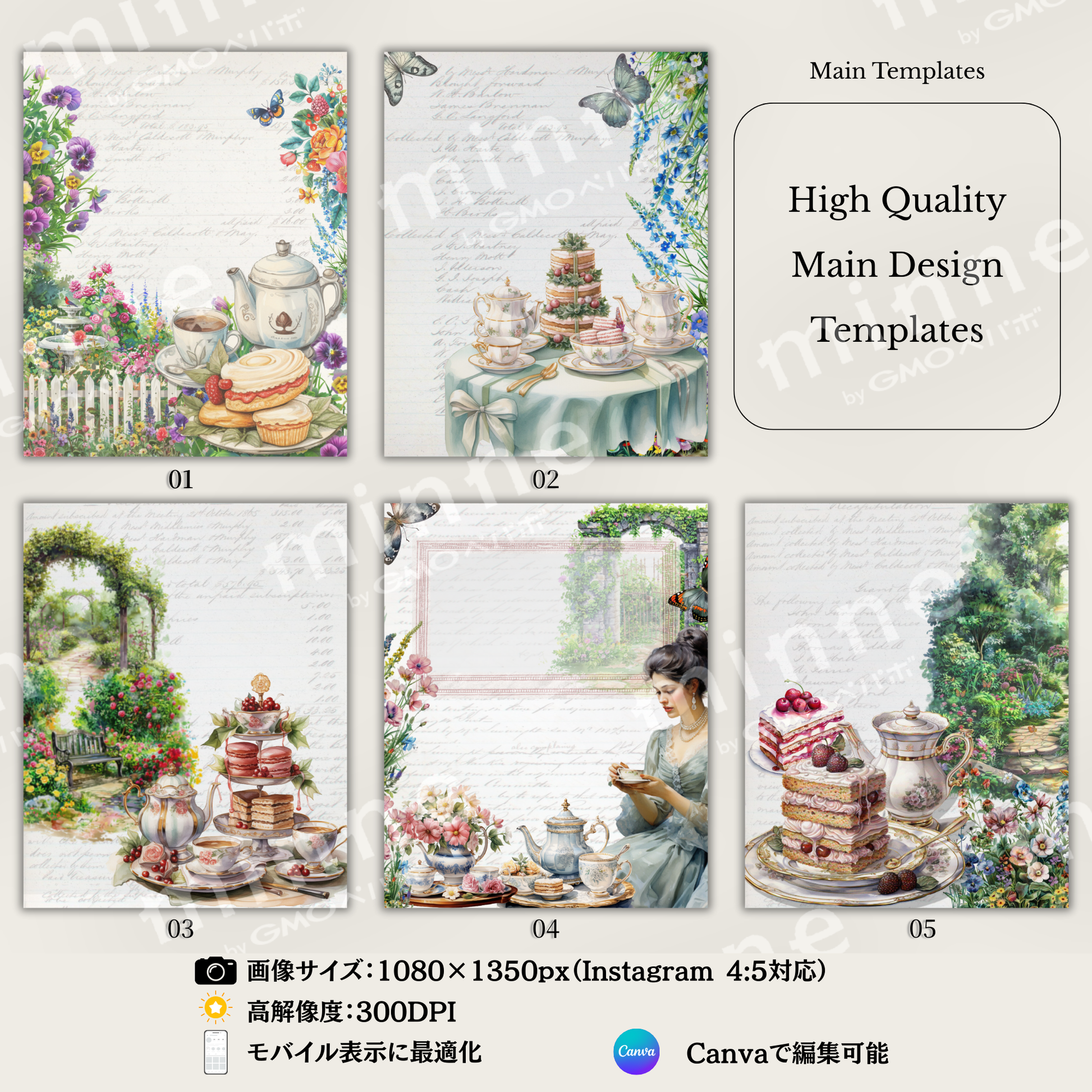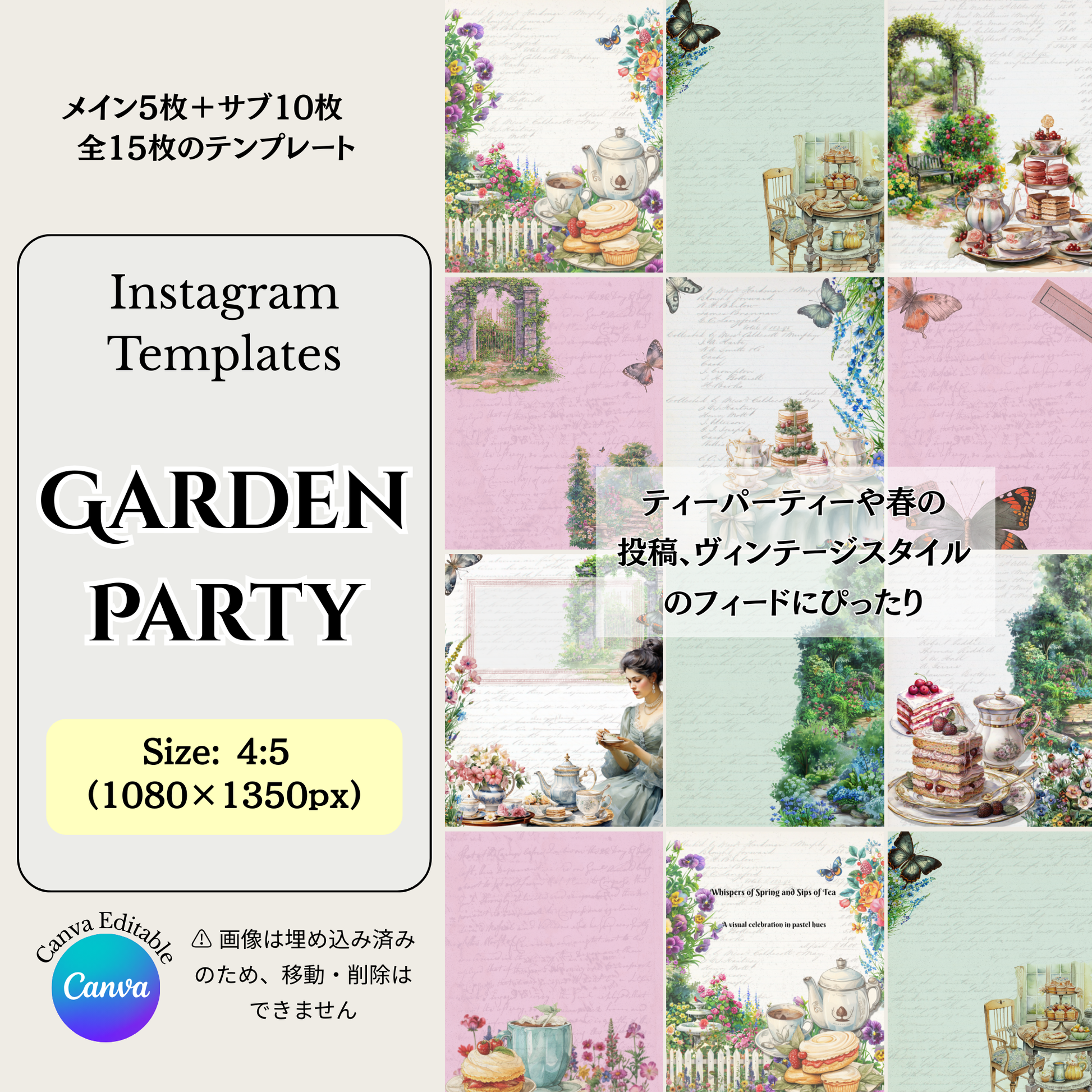Garden Party Instagram Templates 15set 1080x1350px, 4:5|【Canvaテンプレート】Instagram投稿に使えるテンプレート|ガーデンパーティーシリーズ(Newサイズ4:5/15枚セット)
